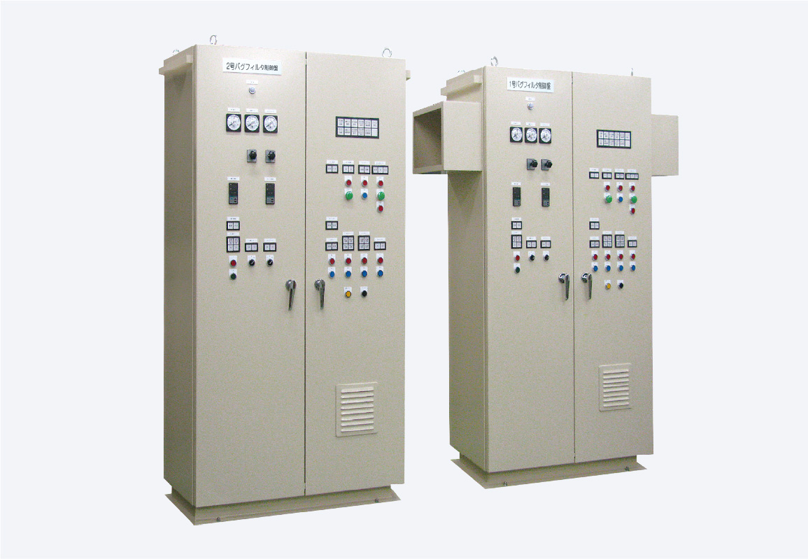 制御盤についてはニーズに適したPLCやリレー等の選択から展開接続図やラダーリスト作成、模擬入出力による総合テストまでを含めて提供しています。また、未だ多くのプラントで利用されている空気制御の制御盤(収納盤)の製作も行っております。