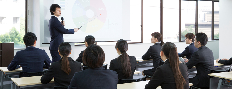 新卒入社の皆さんに対して、会社生活の円滑なスタートを支援するため、当社のルールや制度を説明します。また、社会人としての一歩として必須となる、基本的なビジネスマナーなどもお伝えします。